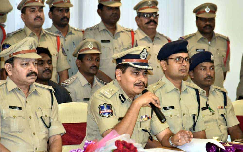 Rachakonda Police Commissioner Mahesh M Bhagwat addressing a press conference in Hyderabad on Monday in connection with arrest of seven members of a notorious interstate dacoity gang and detection of 14 cases and recovery of 150 grams of gold ornaments and other valuables.