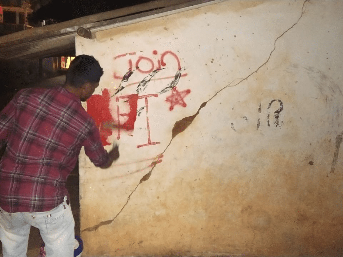 “Police have already taken action, these kinds of writing on the walls is a desperate act. After banning all these organisations, they have become desperate and want to create confusion in society, which I condemn,” Bommai said in response to a question.
