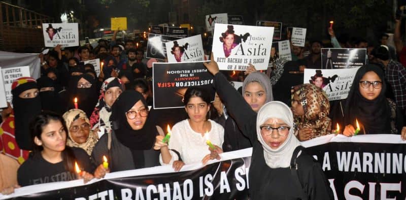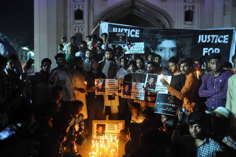 Students and Activists of different NGOs take out a protest rally from various places to Charminar protest against the kidnapping, gang rape and murder of 8-year-old victim Asifa