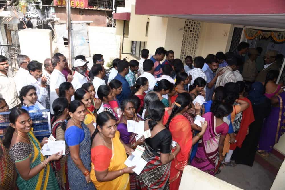 Public standing in queues complains inconvenience at the polling booth (Photo: Laeeq)