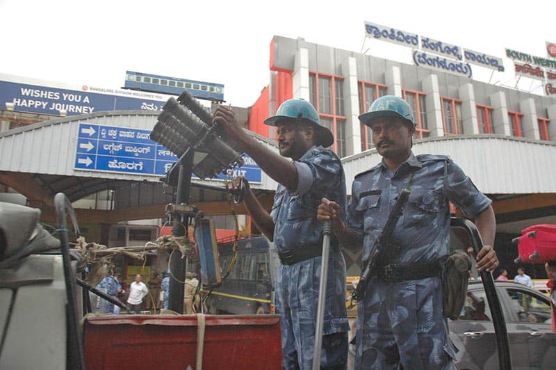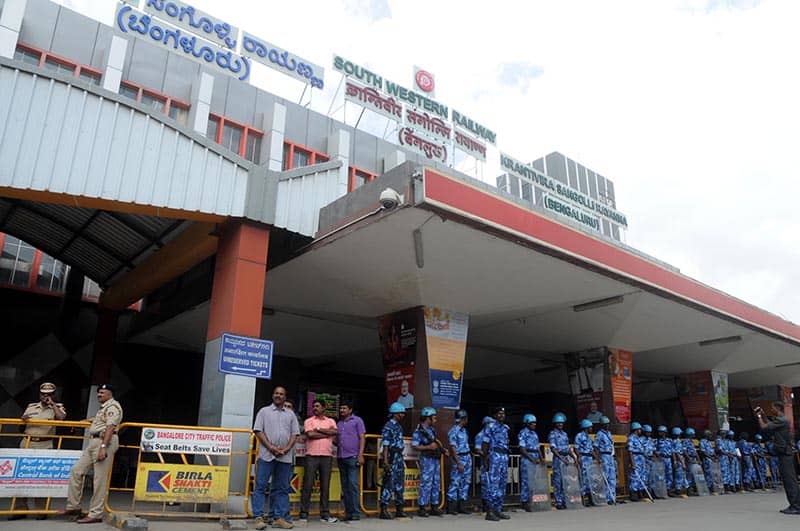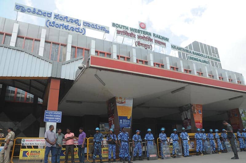 BENGALURU, SEPT 15 (UNI):-Security beefed up at Bengaluru railway station following a Rail Roko call given by Pro-Kannada organisations on Thursday.UNI PHOTO-18U