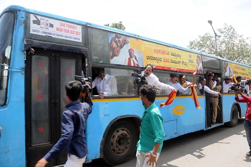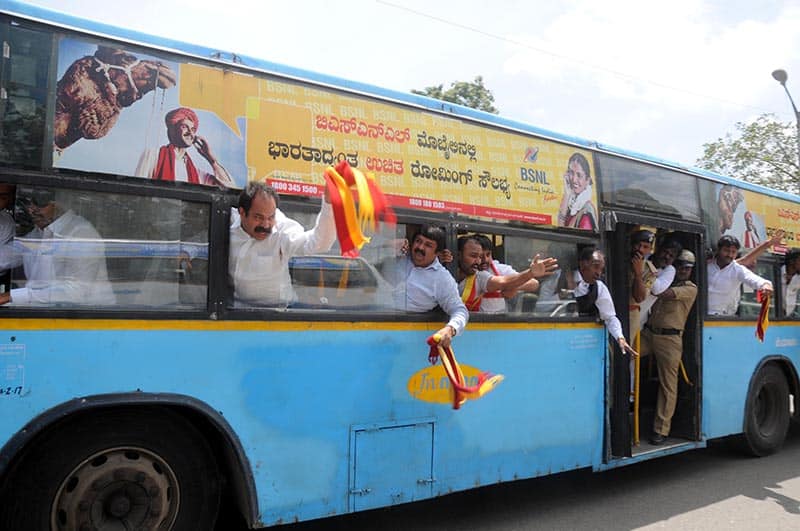 Pro-Kannada activists raising slogans during their Rail Roko Andolan on Cauvery water Issue, in Bengaluru on Thursday.UNI PHOTO
