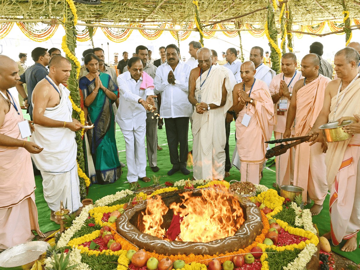 Hyderabad: Chief Minister K Chandrashekar Rao participated in the Bhumi Pooja programme of Hare Krishna Heritage Tower in Kokapet on Monday.