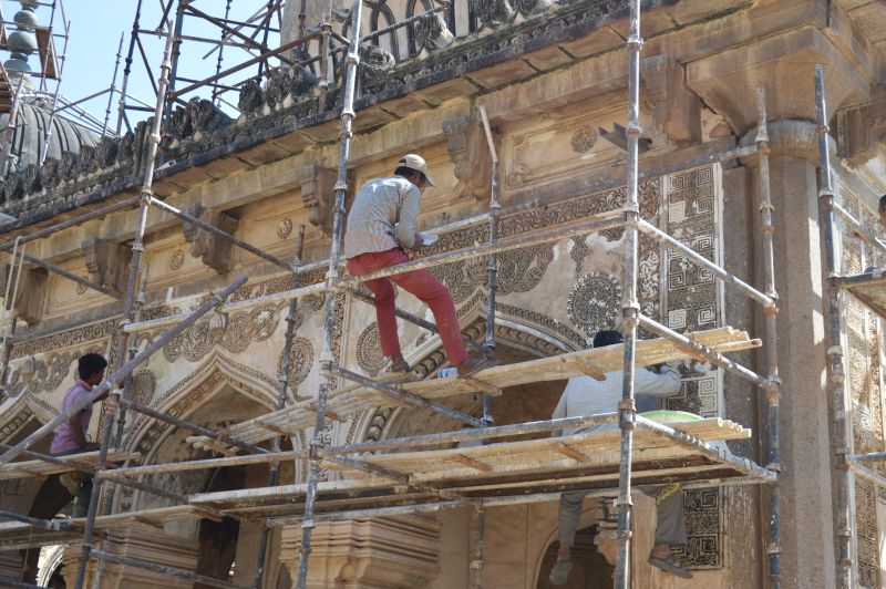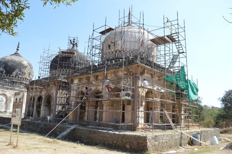 The renovation work of the mausoleums of the hakim nizamuddin gilani and hakim abdul jabbar gilani, The favourite physicians of Muhammad Quli Qutub Shah, is in full Swing (Pics : Murli)