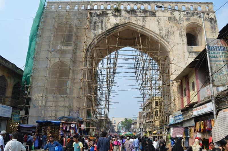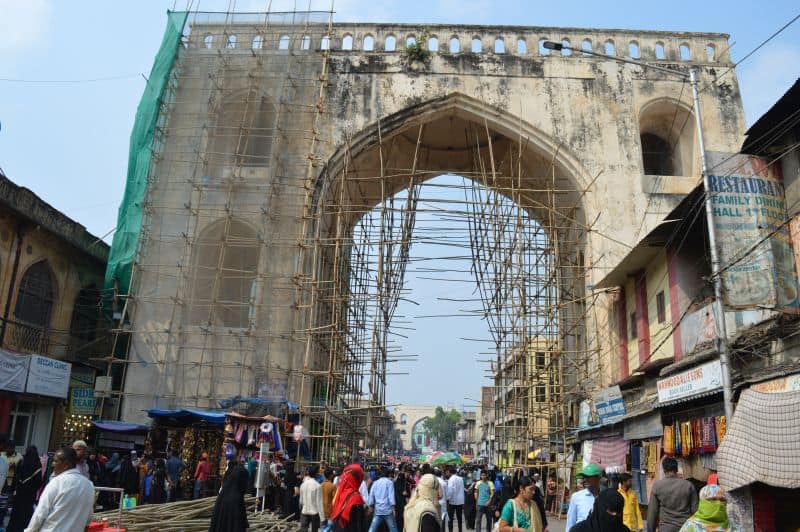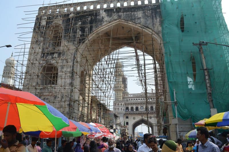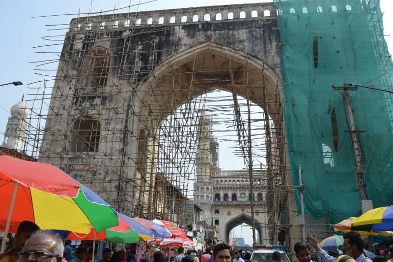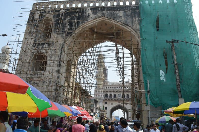 The repairing work of Char Kamn near historic Charminar is going on in full swing (Photo: Murli)