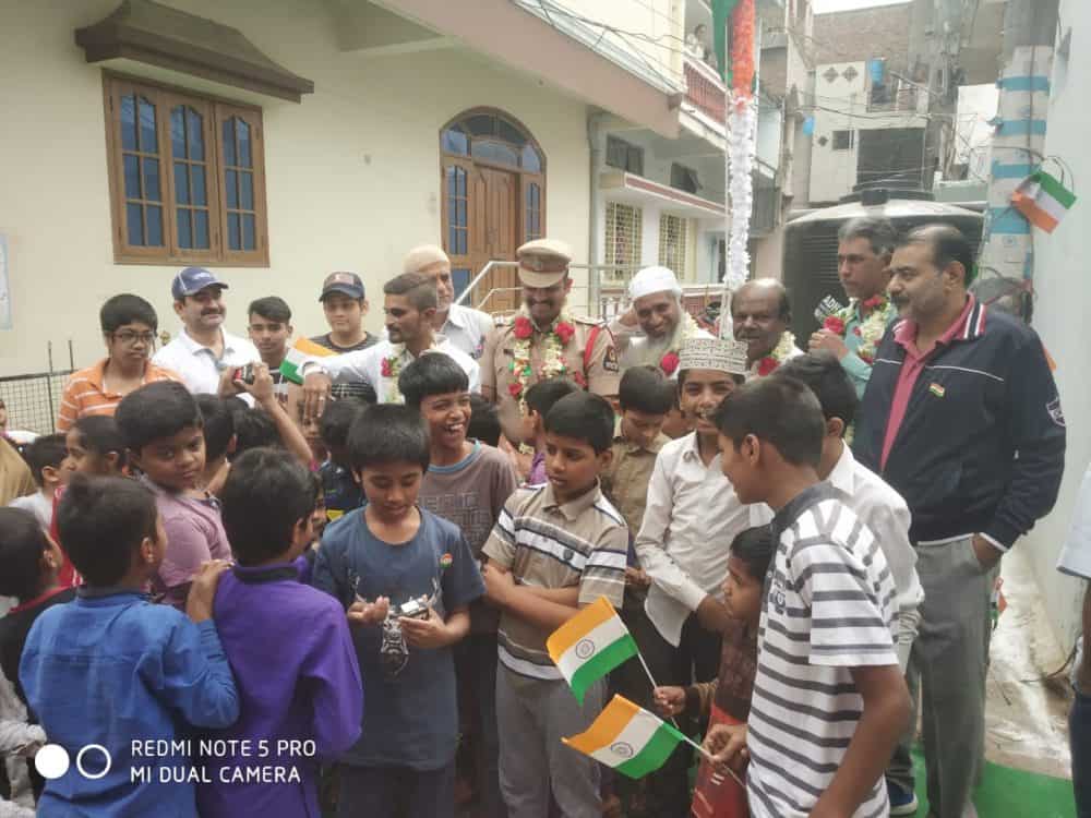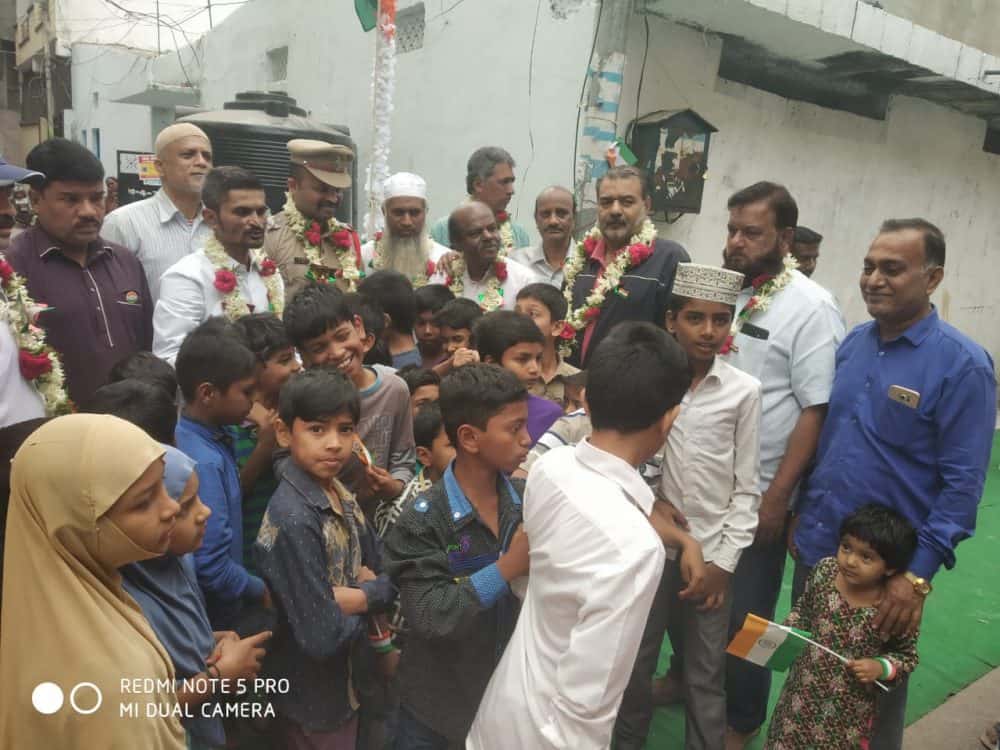 Republic Day celebration in Owaisi Pura Masabtank by peaceful welfare society president Arshad Ahmed SI Humayun Nagar ps Srinivas Rao and other members