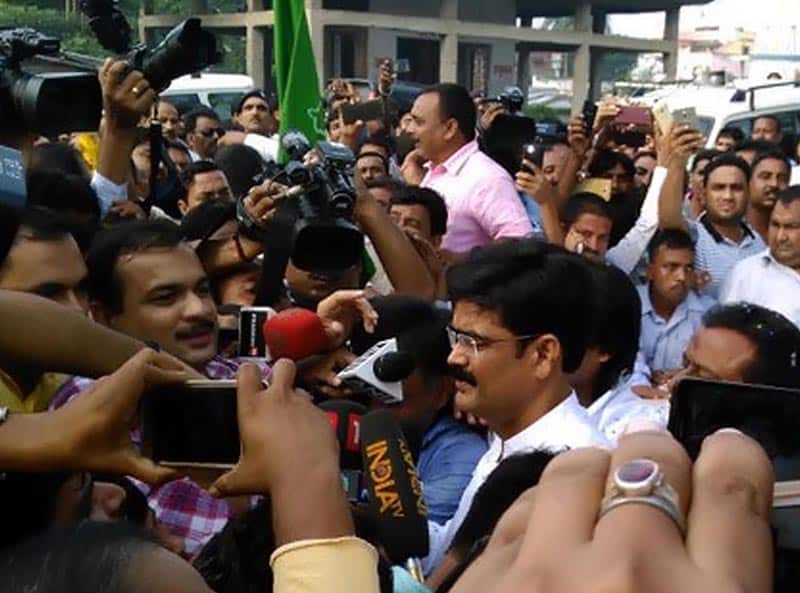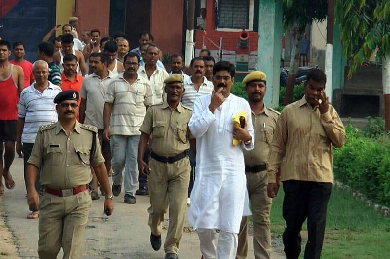 Mohammad Shahabuddin, former RJD, MP from Siwan, greeting by his supporters after releasing on bail after 12 years of imprisonment in Bhagalpur on Saturday. UNI PHOTO