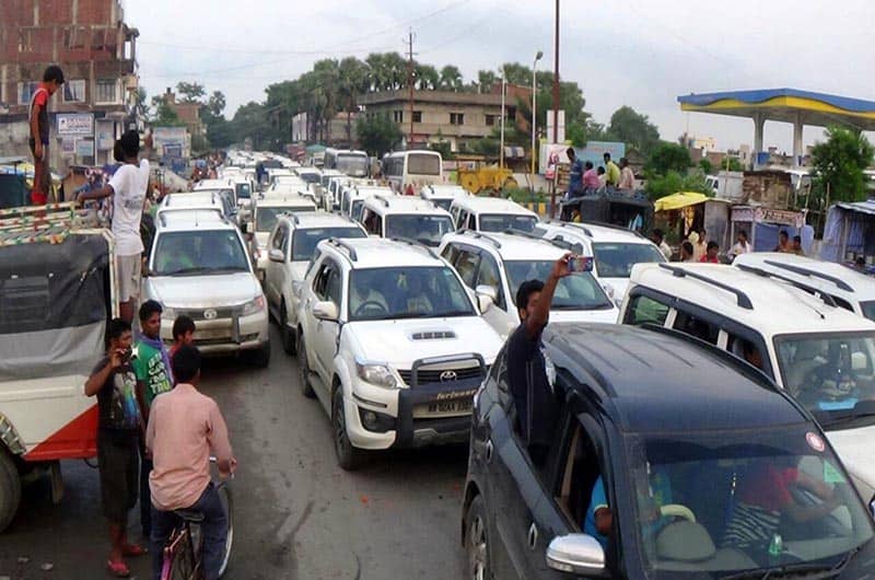 BHAGALPUR, SEP 10 (UNI):- Hundreds of vehicles running in support of Mohammad Shahabuddin, former RJD MP from Siwan, of his released on bail after 12 years of imprisonment in Bhagalpur on Saturday. UNI PHOTO -109u