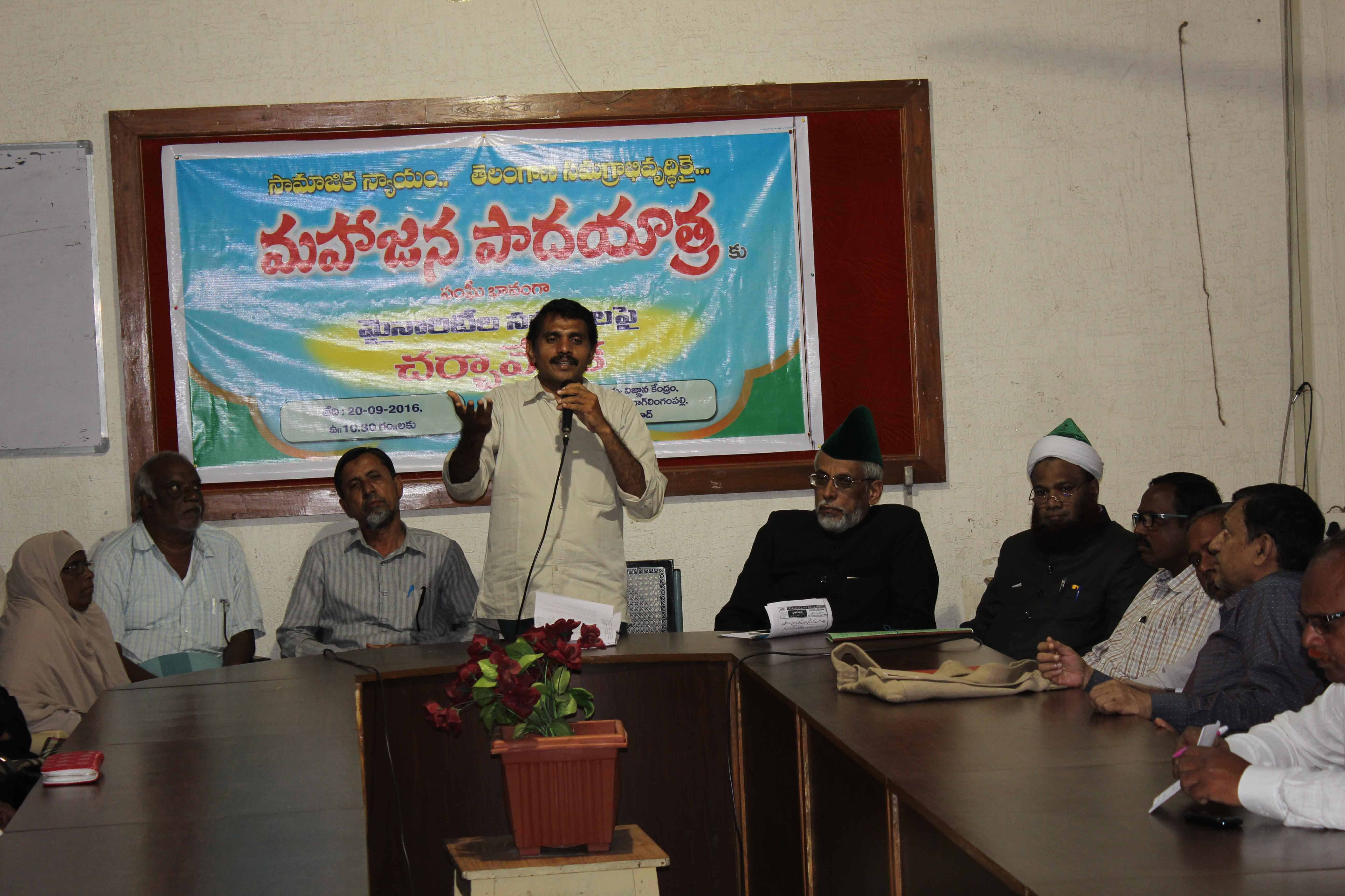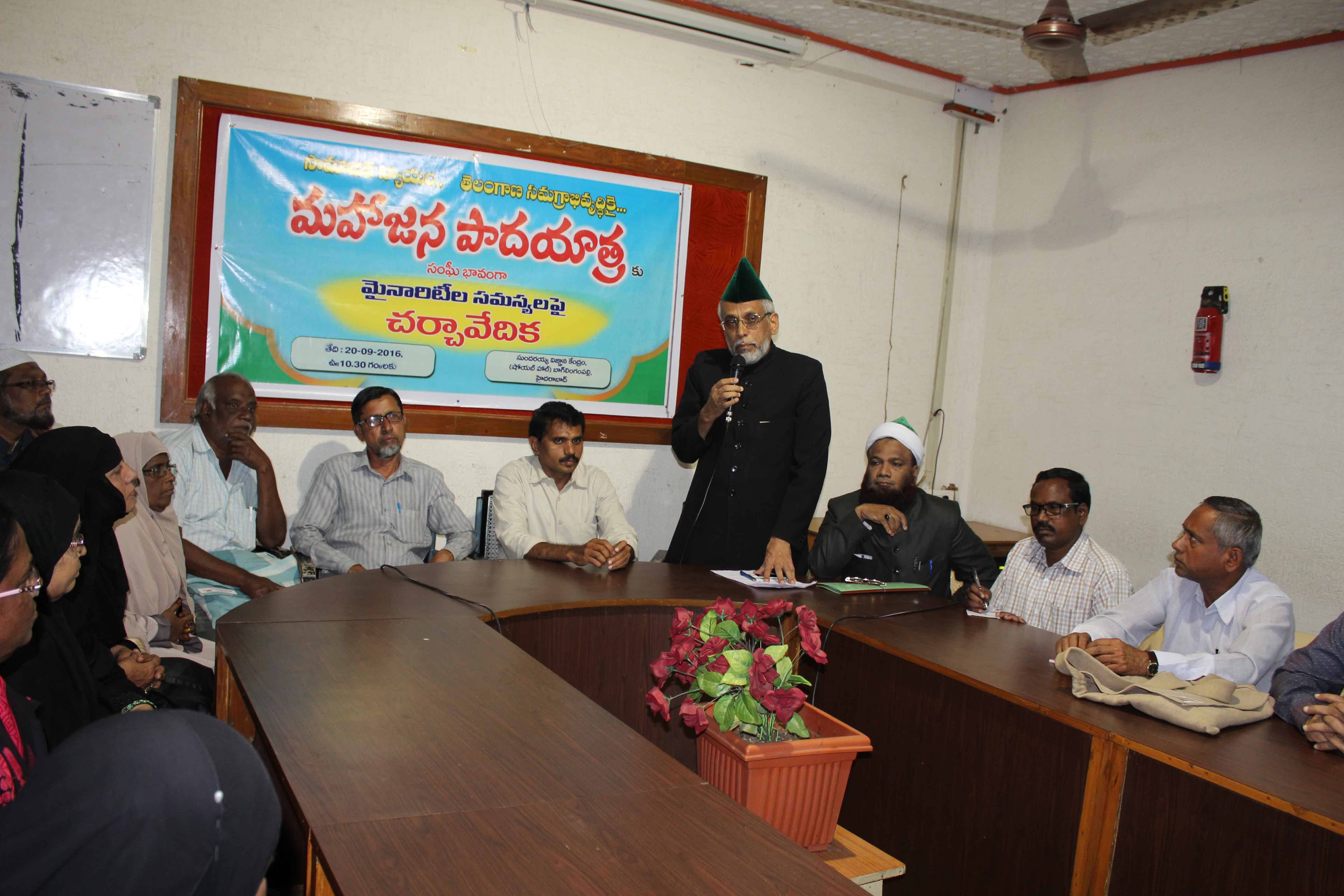 Minority sub plan and 12% reservation action committee organized a round table on basic facilities in GHMC, at S V Kendram Hall. Moulana Syed Taraq Quadri, Mohammed Abbas and others can be seen during round table. (Photo: Zabi)