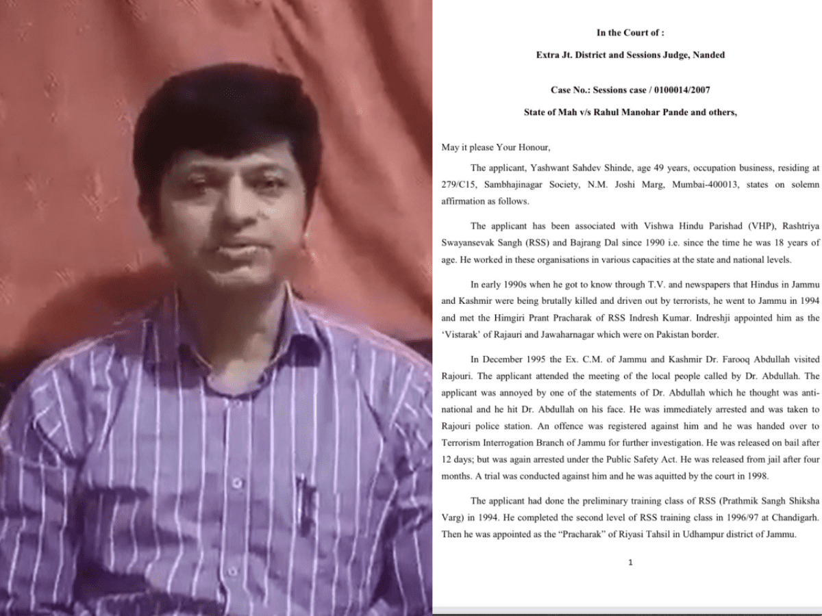 In the affidavit, Yashwant Shinde named several Vishwa Hindu Parishad (VHP) and RSS members who took part in the bomb blast project.