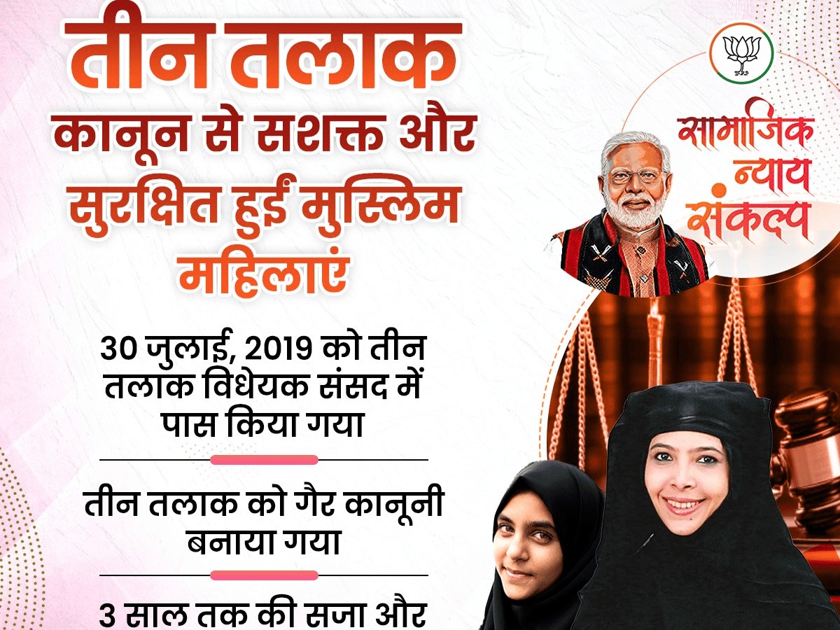 In an attempt to convey the message that the government has done a big and historic work of providing equal rights and security to Muslim women by declaring triple talaq illegal through Parliament, the saffron party on Tuesday took to its Twitter account depicting the entire sequence of events declaring the practice as illegal.