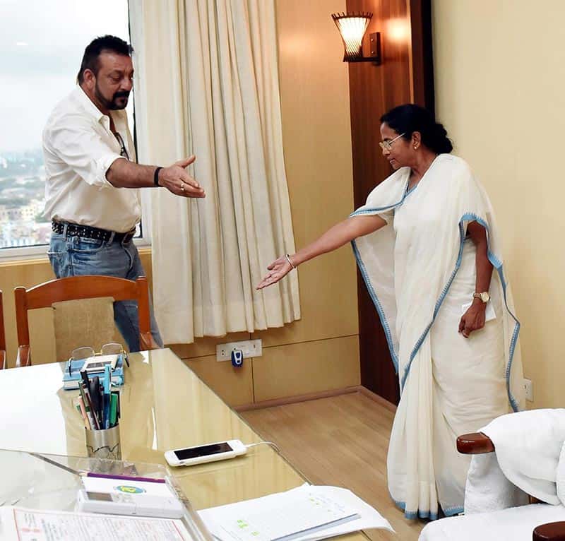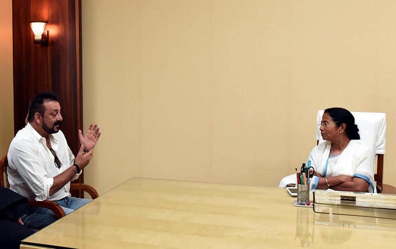 West Bengal Chief Minister Mamata Banerjee and Bollywood actor Sanjay Dutt during a meeting at Nabanna in Kolkata on Monday. UNI PHOTO