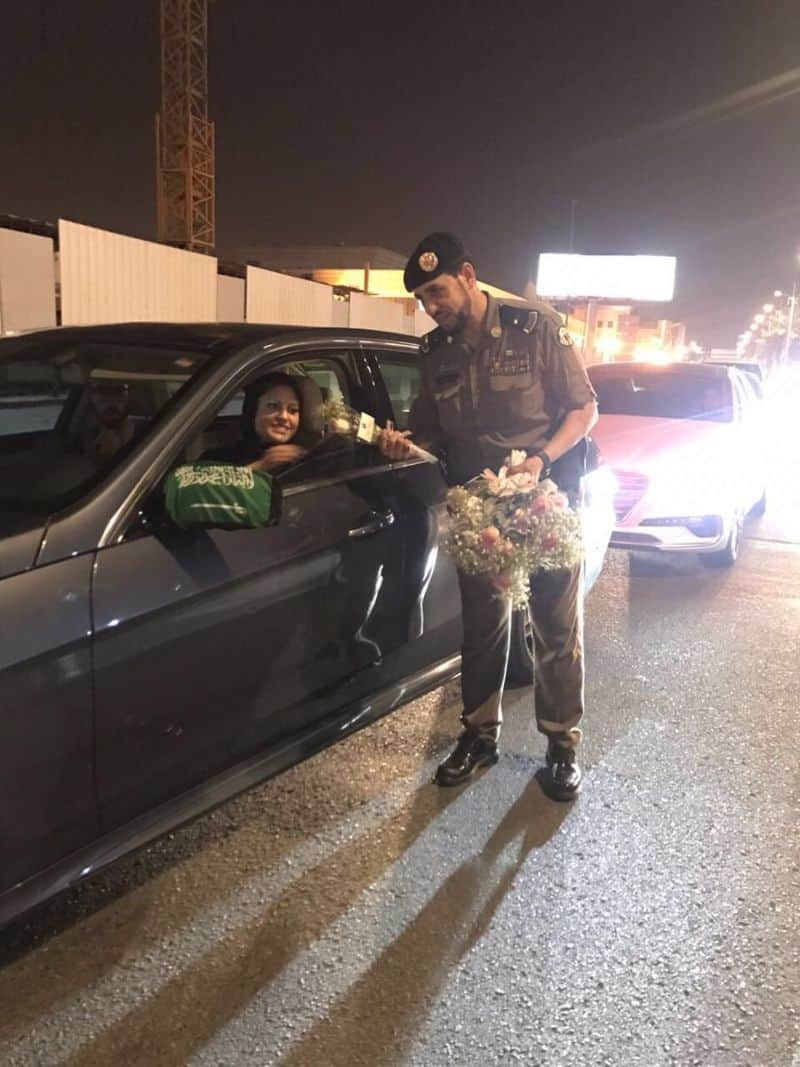 Saudi Samira Al-Ghamdi is seen in her car with family driving at food court in the coastal city of Jeddah for the first time. Little after midnight the law allows women to drive on June 24, 2018.