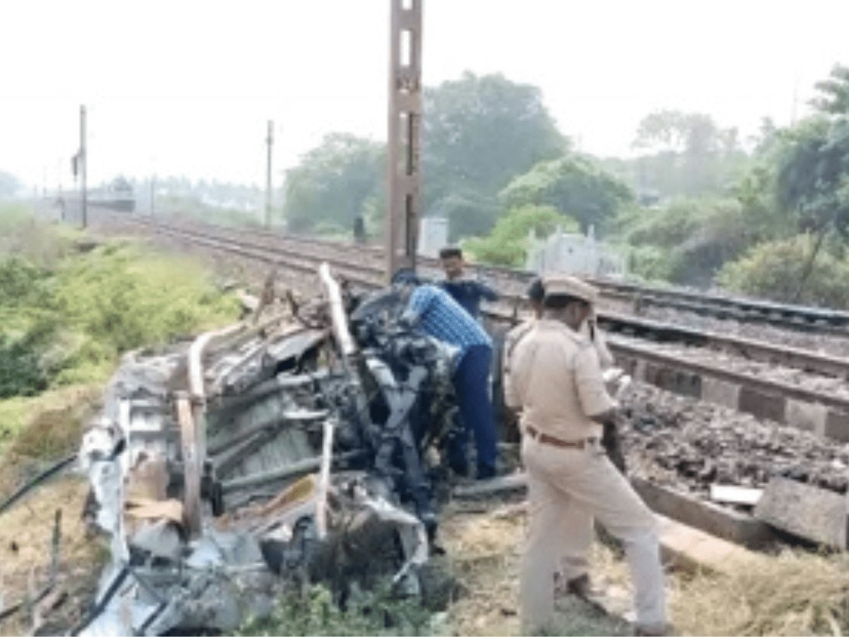 The locomotive of the Duronto Express was damaged and broke down after hitting the vehicle. The accident affected the movement of trains between Vijayawada and Visakhapatnam.