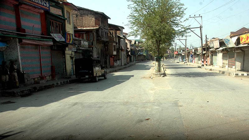 SRINAGAR, SEP 10 (UNI):- A deserted view of NallaMar road in down town Srinagar as restrictions remain in place in major parts of Kashmir valley aimed separatist strike call on the 64th consecutive day on Saturday. UNI PHOTO-10U