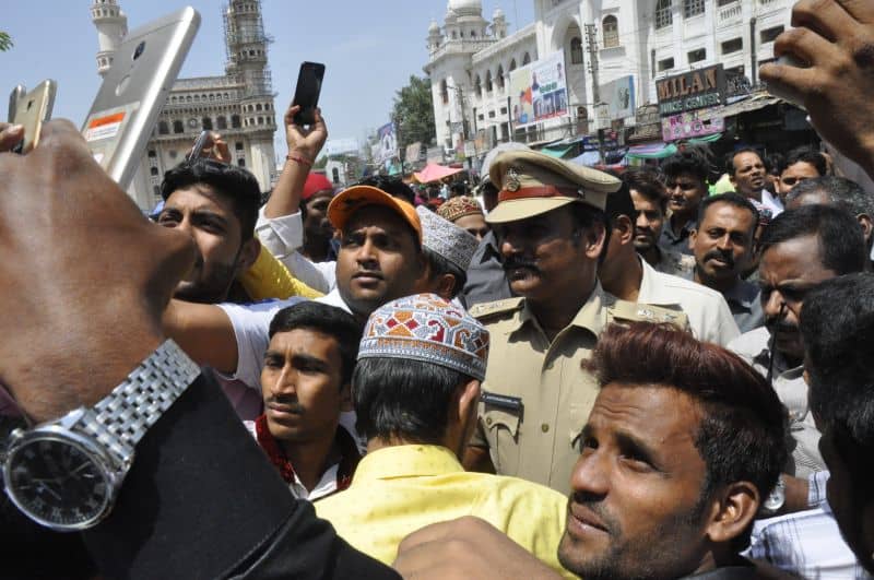 DCP South Zone V. Satyanarayana can be seen posing for a selfie with musallies amidst protest against rape and murder of an 8-year-old in Kathua district of Kashmir. (Pics. Mazher)