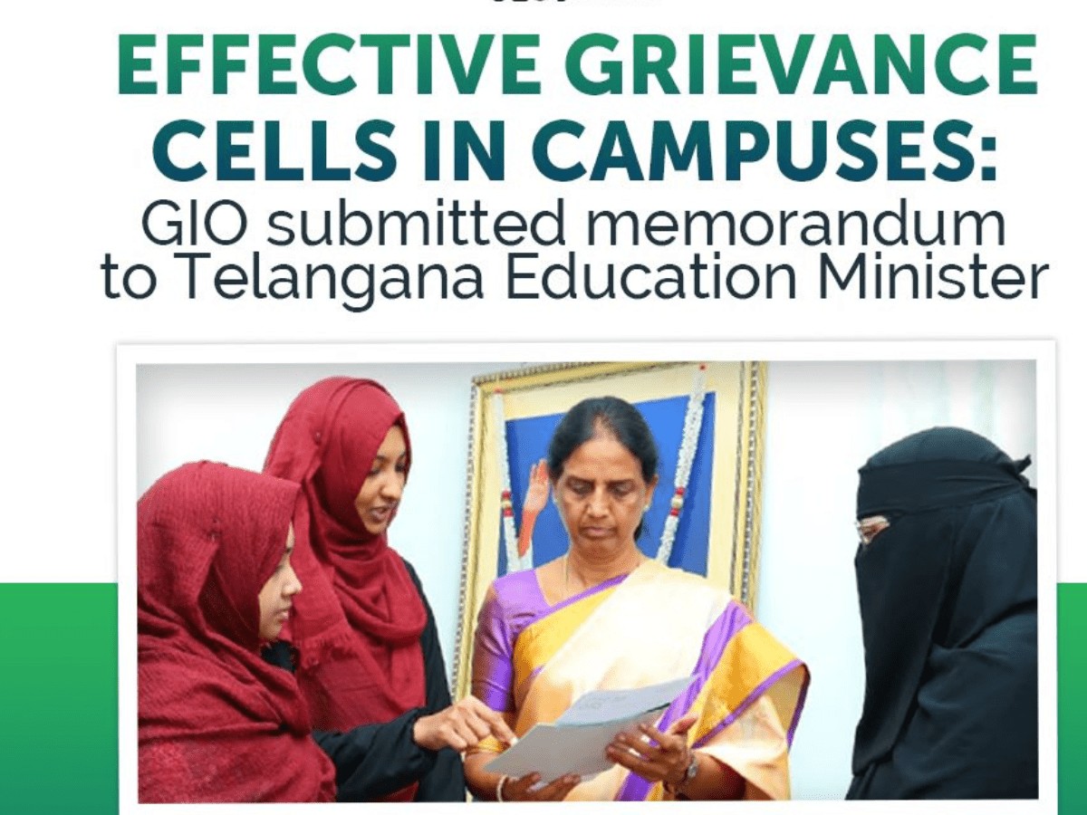 A representation was submitted to the Telangana education minister Sabitha Indira Reddy by the GIO members who requested redressal cells in accordance with the guidelines of the University Grants Commission (UGC).