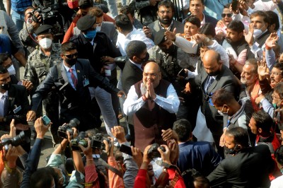 New Delhi, Jan 16 : Union Home Minister Amit Shah held a meeting with West Bengal core committee at his residence and briefed them about the roadmap to win 200 seats in the state.