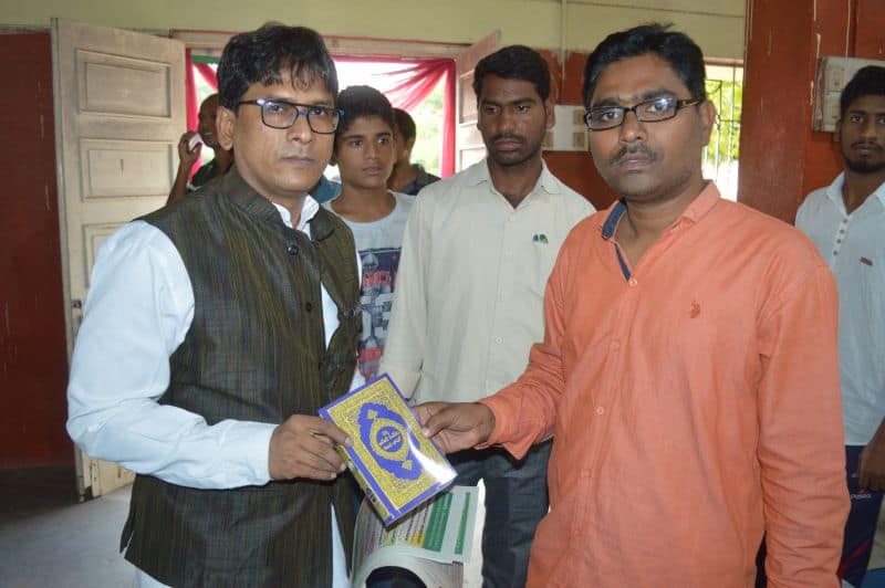 Siasat distributes copies of Holy Quran in Telugu among non-Muslim students of Osmania University during the interfaith Iftar organised by Siasat on Wednesday in Hyderabad. Other books on misconception of Islam and moral message of Islam were also distributed. (Pics. Murli)