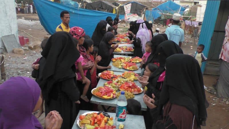 An Iftar party exclusively organised in one of the Balapur camp by Siasat Technologies Limited on behalf of archive.siasat.com readers. Separate arrangements were made for Rohingya women.