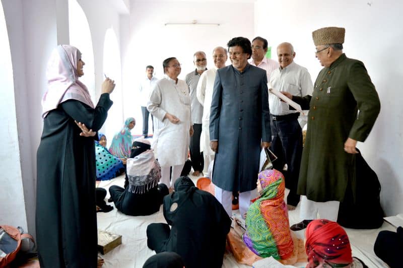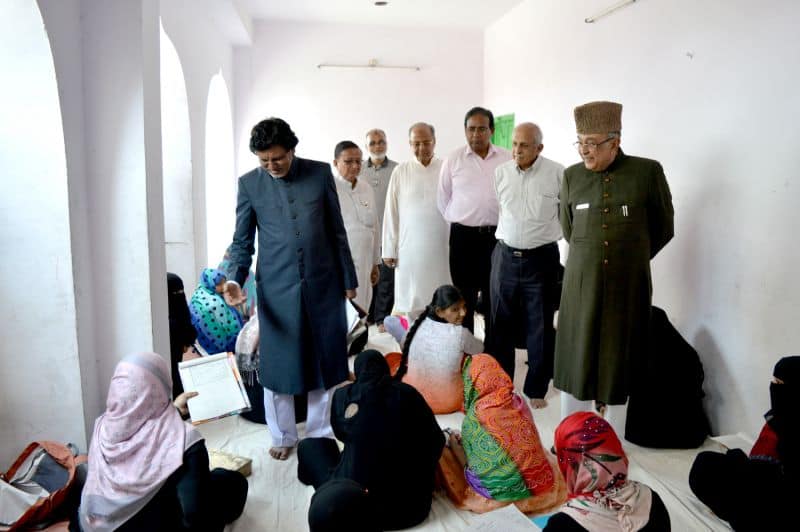 Siasat’s Urdu exam 2018 Mr. Zahid Ali Khan, Mr. Iftekhar Husain and others inspecting Bibi ka Alawa packed with children writing Siasat’s Urdu Dani, Zaban Dani and Insha Exams conducted by Abid Ali Khan Educational Trust (Siasat) across the on Sunday. (Photo: Murli)