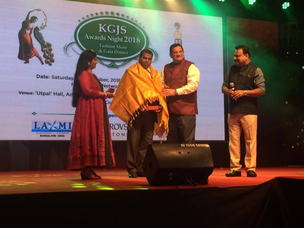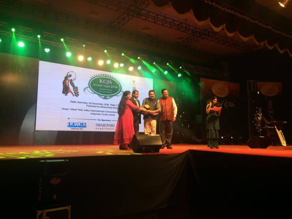 Mir Gazanfar Ali Zaki, General Secretary of Saudi Indian Business Network (SIBN) Receiving Award & Shawl at ADLUX International Convention & Exhibition Center, Kochi, Kerala from Kerala Gems & Jewellery Exhibition 2018 Organizers for Promoting Bilateral Trade between Saudi Arabia and India through Consulate General of India, Jeddah & Saudi Indian Business Network (SIBN) which work under the Patronage of Consulate General of India).