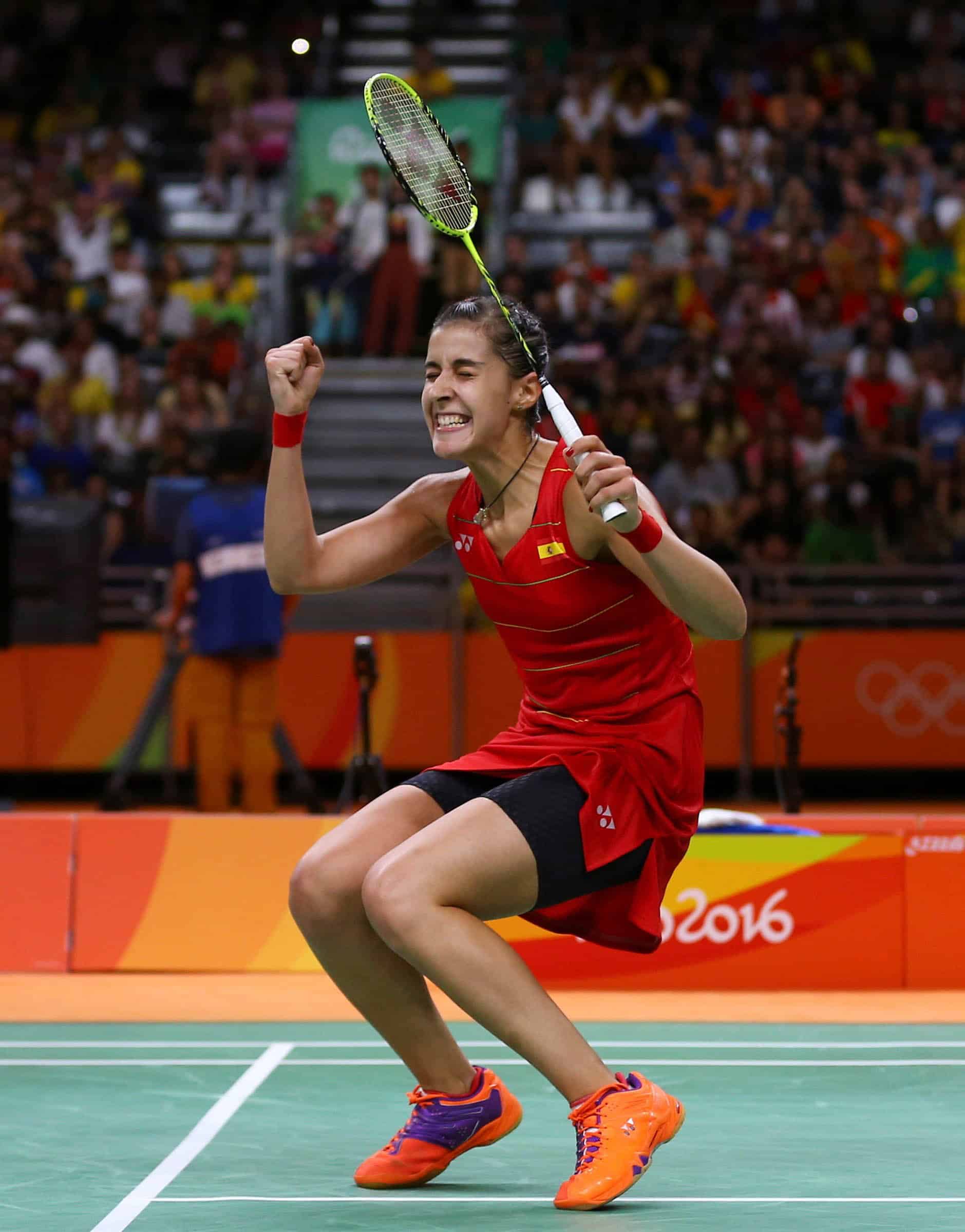 RIO DE JAMEIRO, BRAZIL – 19/08/2016. Carolina Marin (ESP) of Spain celebrates winning her match against P.V. Sindhu (IND) of India. REUTERS-27r