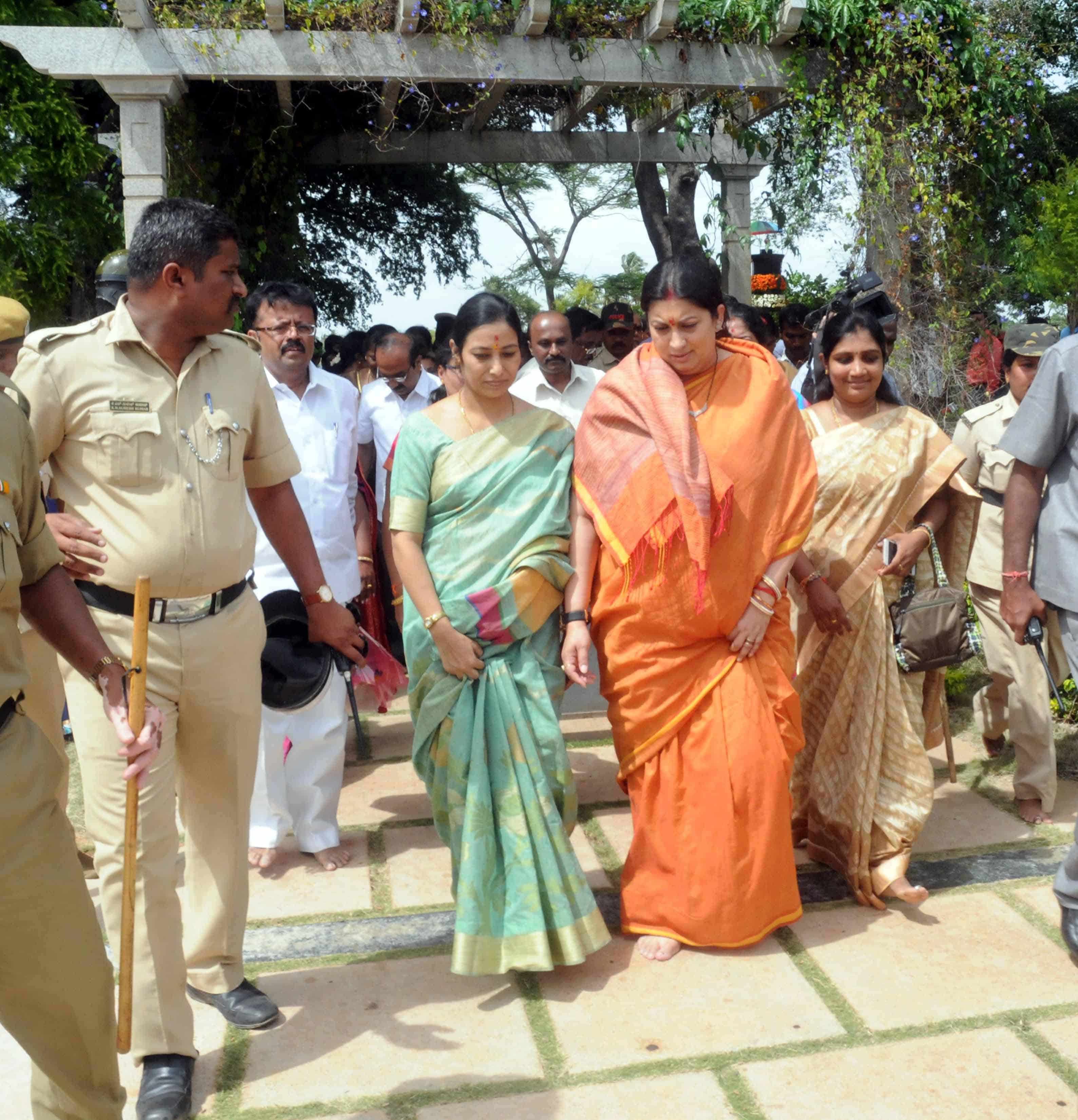 VIDURASHWATHA, GOWRIBINDNUR, KARNATAKA, AUG 23 (UNI):- Union Textiles Minister Smriti Irani visit Jallianwala Bagh of South India during the BJP Tiranga Yatra as part of 70th Independence Day celebration at Vidurashwatha, Gowribindnur in Karnataka on Tuesday. UNI PHOTO – 152U