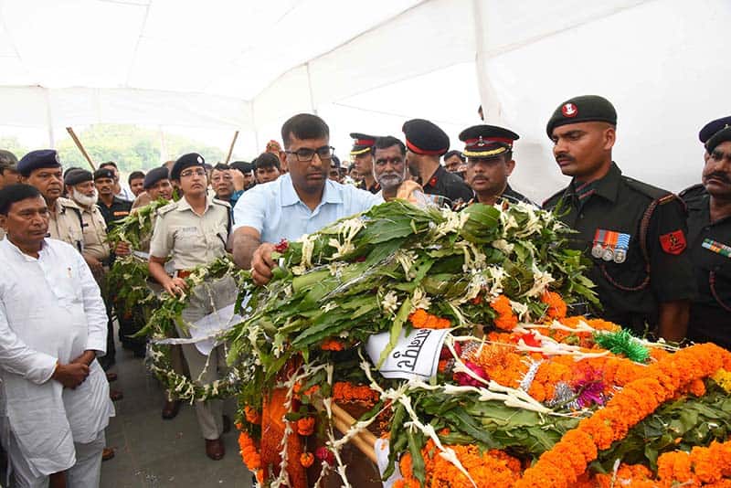 BODHGAYA, SEP 20 (UNI):- Local Adminstatration paying tributes to Uri terror attack martyr Sunil Kumar Vithyarthi at his village Bokanari in Gaya on Tuesday. UNI PHOTO-126U