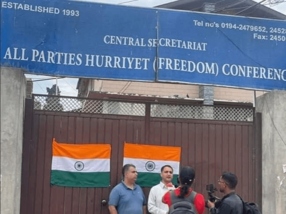 The protesters daubed “India” on the main gate of the Hurriyat’s central building and brought down the signboard of the separatist amalgam, the officials said.