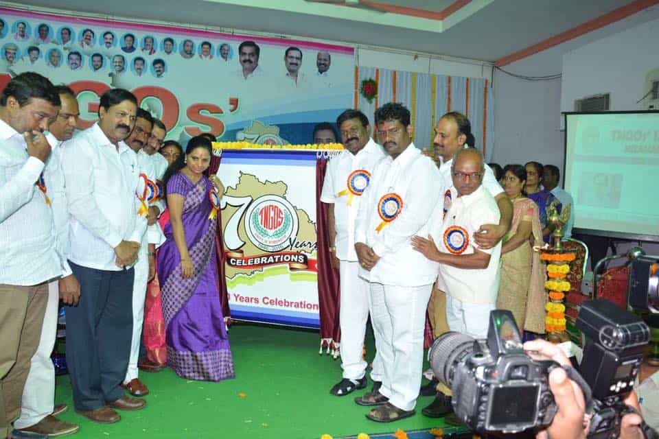 President Telangana Jagruthi and MP Nizambad Kavita Kalvakuntala were participated in standing council meeting of TNGOs at Nizamabad. TNGOs Honorary President Devi Prasad, President Karam Ravindar Reddy and others can also be seen. (Photo: Zabi)