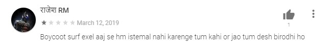 After detergent brand Surf Excel made an advertisement on religious harmony and faced backlash for promoting ‘love jihad’ people are posting negative reviews for MS Excel on Playstore calling the app ‘anti-national’.
