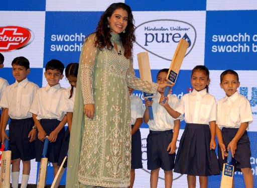 Indian Bollywood actress Kajol Devgn addresses ‘Swachh Aadat Swachh Bharat’ campaign event in Mumbai on January 10, 2018. AFP