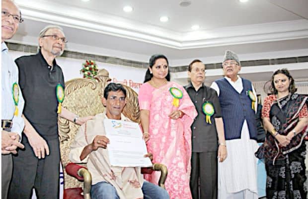 HYDERABAD: Kalvakuntla Kavitha TRS MP presenting 27th Yudhvir Memorial Award to Social worker Syed Osman Azhar Maqsusi in recognition of his dedication to removing other people’s hunger since 2012(providing food to needy every day since 2012), real service of humanity is to feed the hungry. In the entire world, many people sleep without eating anything. She expressed delight that Govt. of Telangana has been helping the hungry. at a function at FTAPCCI red hill in Hyderabad on Monday, in picture Narendra Luther Chairman, Janab Zahid Ali Khan, Vipma veer.Murlidhar Gupta,Dr.Bajranglal Gupta and others. UNI PHOTO
