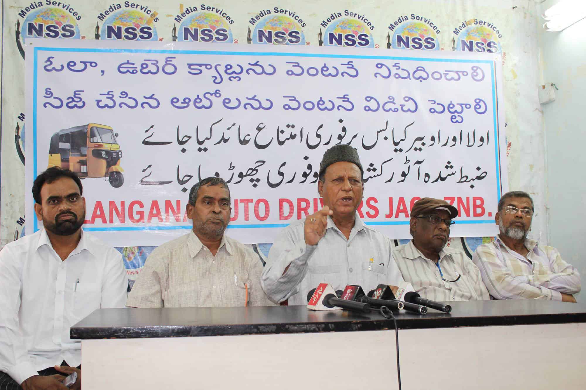 Telangana Auto Drivers JAC has warned the State government that it would launch a do-or-die agitation from August 16 if the government failed to solve their just demands within a fortnightSpeaking to mediapersons here on Tuesday, Amanullah Khan, JAC Convenor, said they would first launch an indefinite fast and intensify the agitation later. The auto drivers were demanding immediate ban of Ola and Uber Cabs plying on the city roads by indulging in illegal activities; immediate release of hundreds of autos seized and kept at Traffic Police Stations, Goshamahal and RTA offices for months in the name of violation of permit conditions; fixation of auto fares on a par with the neighboring States and the government should bear 50% of the third party auto insurance charges as subsidy and help the automen. (Photo: Zabi)