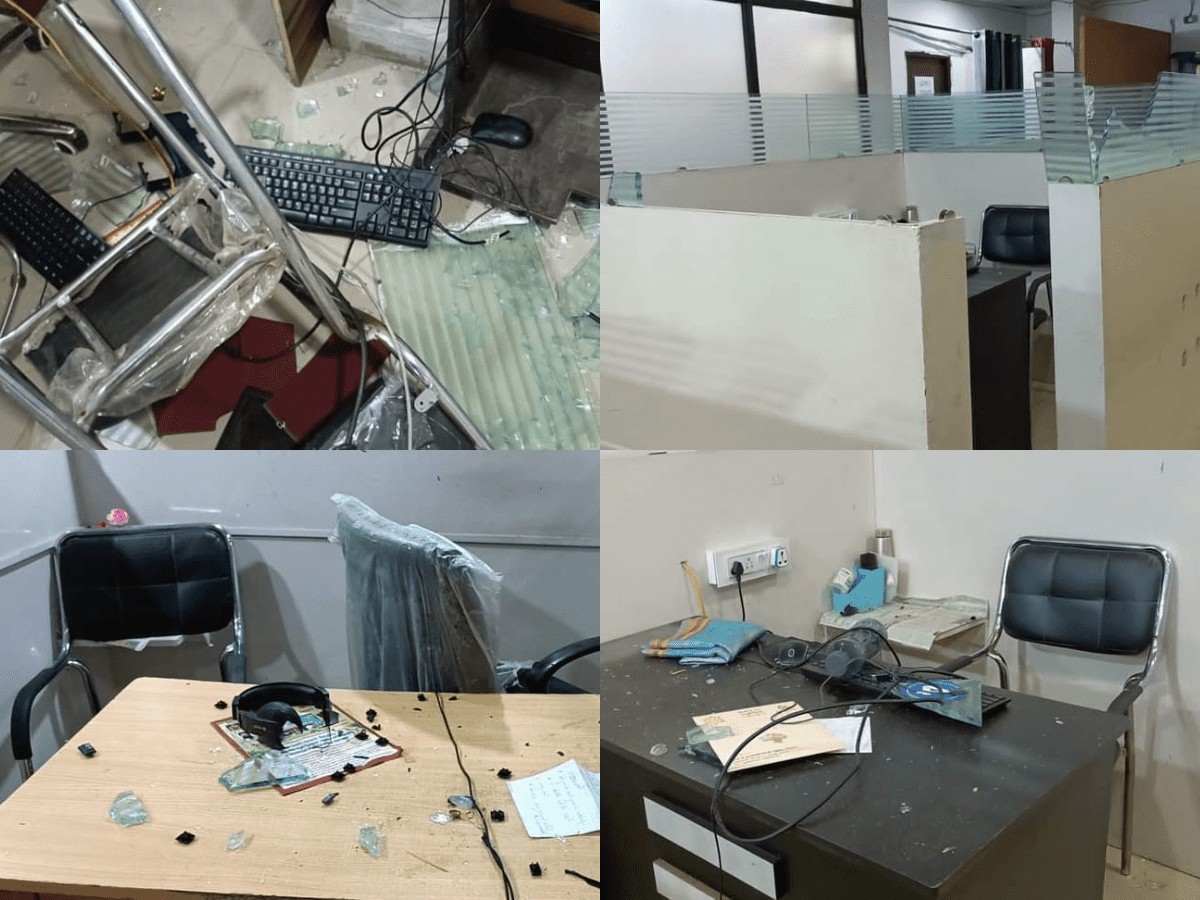 The incident occurred at Peerzadiguda under the Medipally police station in Medchal Malkajgiri district. Unidentified men barged into the office and ransacked furniture and computers before fleeing from the spot.