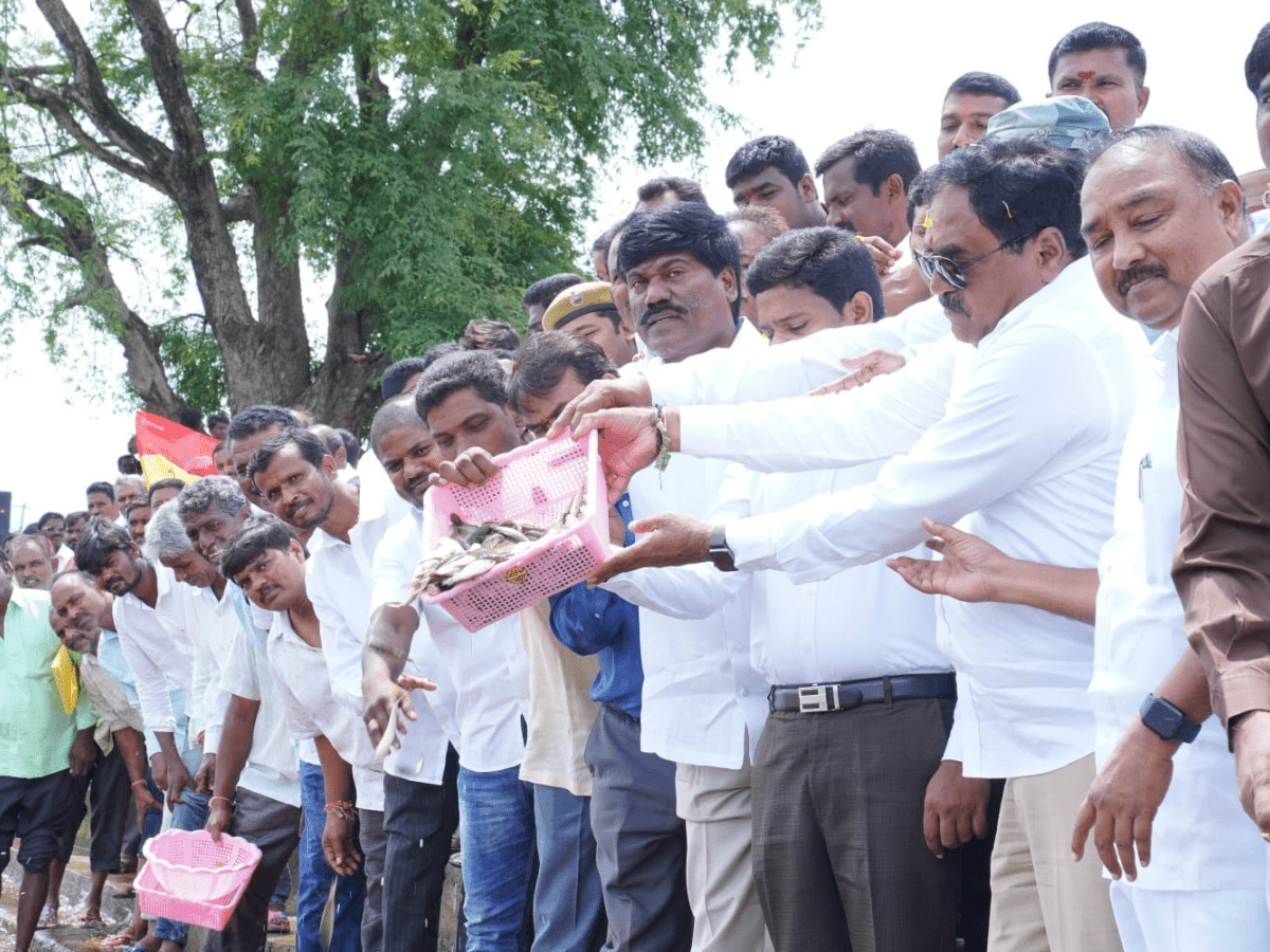 In a total of 753 tanks around the district, District Collector Dr B Gopi announced that plans had been made for the release of two crore fish seedlings. He also pledged to take action to designate locations for the marketing of the fish for the benefit of the fishermen.