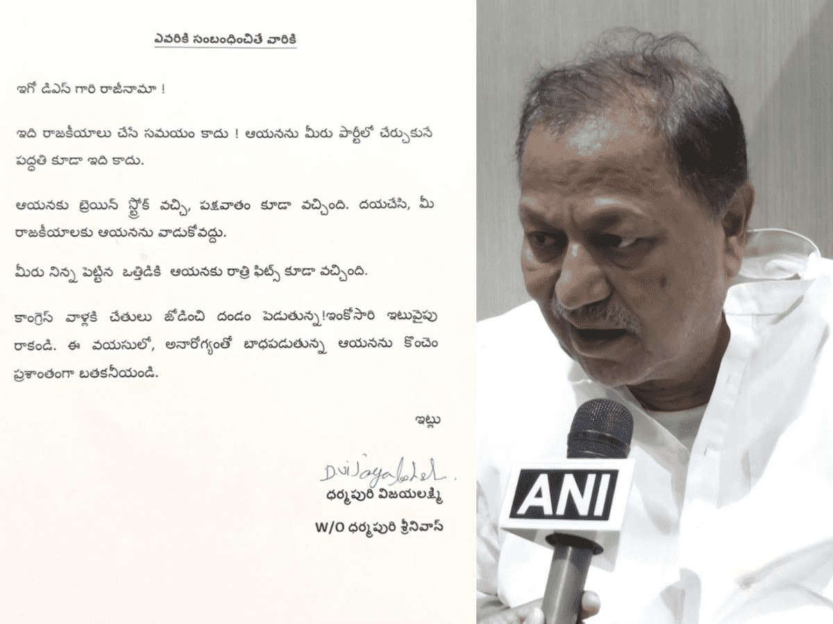 Srinivas named his wife D. Vijayalaxmi as the witness. She also issued a separate statement requesting Congress not to use Srinivas for politics.