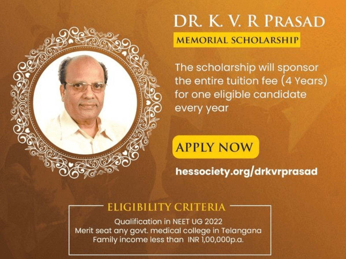 Hyderabad: Members of the HES Society have announced Dr KVR Prasad Memorial Scholarship for medical students who have cleared NEET (National Eligibility cum Entrance Test).