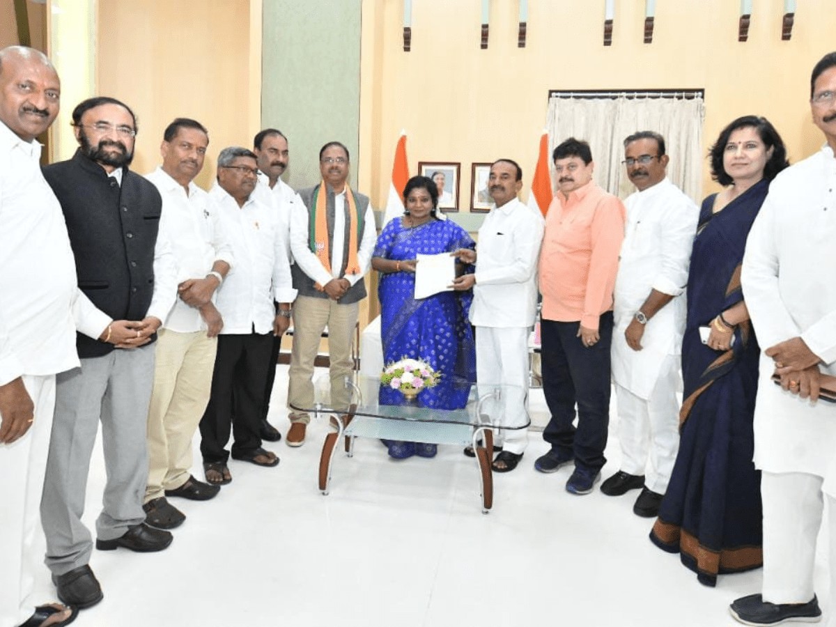 The delegation included BJP national Vice President D.K. Aruna, B. Narsaiah Goud, M. Shashidhar Reddy and other leaders.