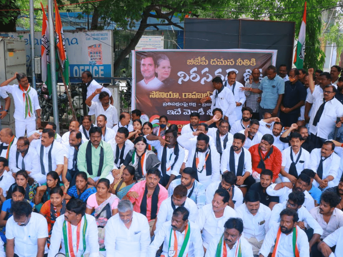 The Congress staged a big demonstration that began at the Indira Gandhi statue on Necklace Road and ended to the ED’s Hyderabad headquarters.