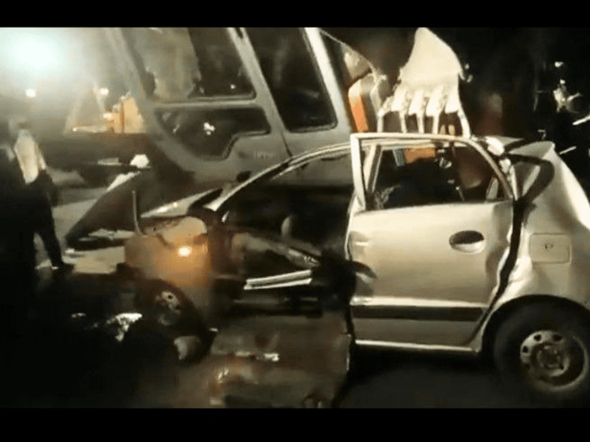 The incident was witnessed by passersby who immediately informed the police who reached the location and pulled two trapped in the car out and shifted them to the hospital.