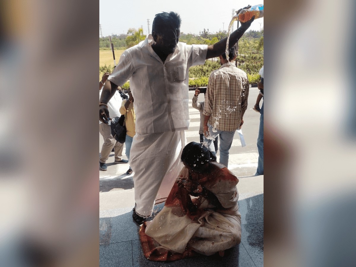 He tried to light himself on fire by pouring kerosene but was rescued by the security officials.