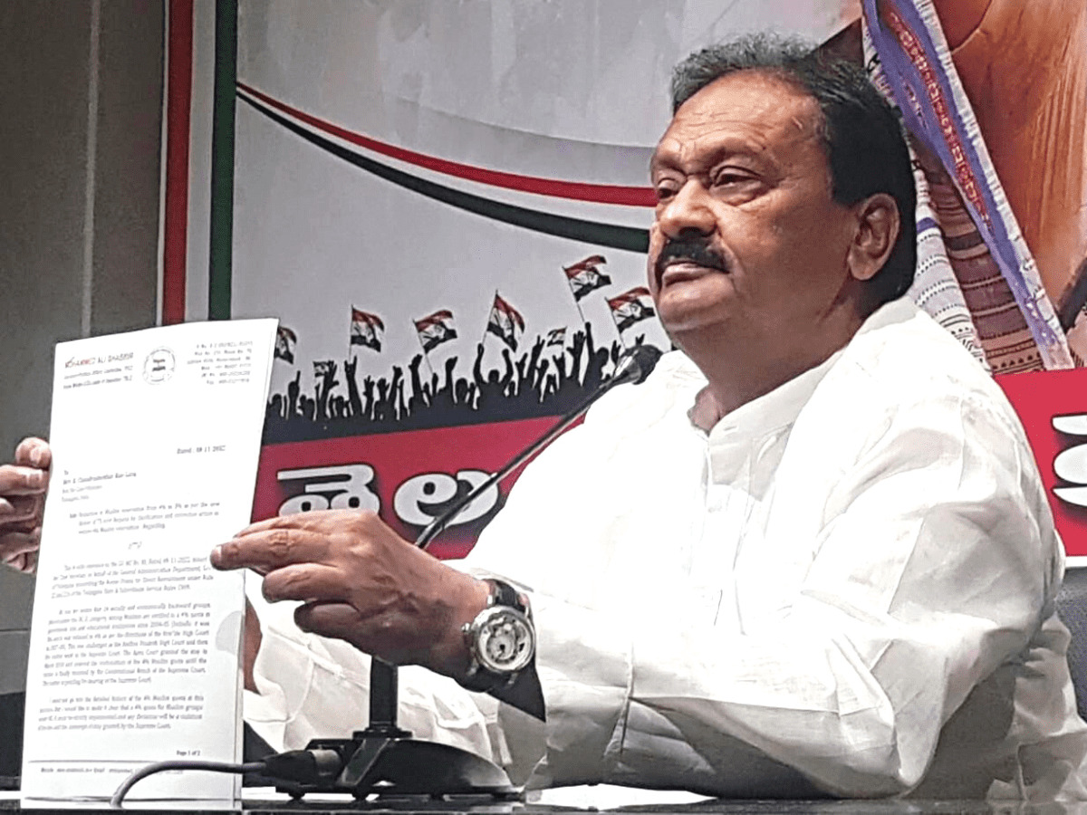 “As you are aware that 14 socially and economically backward groups, placed under the BC-E category, among Muslims are entitled to a 4 percent quota in government jobs and educational institutions since 2004-05 (Initially, it was 5 percent and it was reduced to 4 percent as per the directions of the High Court in 2007-08). This was challenged in the Andhra Pradesh High Court and then the matter went to the Supreme Court. The Apex Court granted the stay in March 2010 and ordered the continuation of the 4 percent Muslim quota until the matter is finally resolved by the constitutional bench of the Supreme Court. The matter is pending for hearing in the Supreme Court,” he said in the letter to the chief minister.