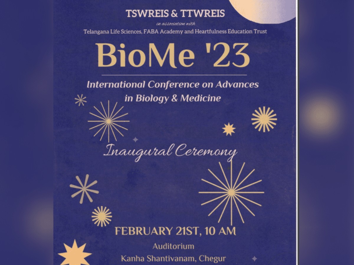 Hyderabad: Inauguration ceremony of the Telangana Social and Tribal Welfare Residential Educational Institutions Societies (TSTWREIS)’s International Conference ‘BioMe’23 will be held at the Kanha Shantivanam Auditorium, Chegur AT 10 am on February 21.