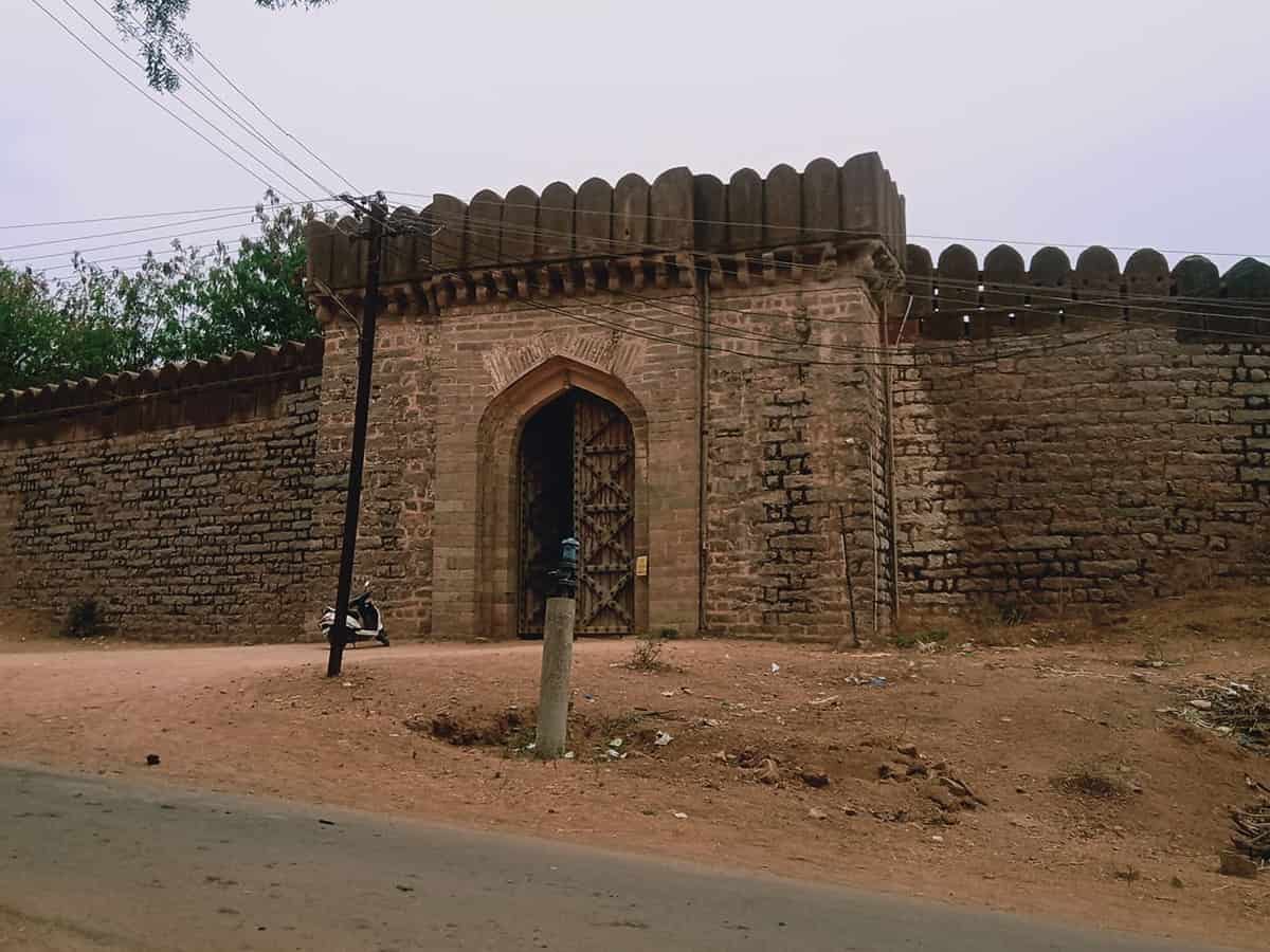 The fort was constructed on a circular plan and has two ways to enter one on the east and the other on the west and there are four bastions in four directions. Two places and one temple complex are situated in the fort.