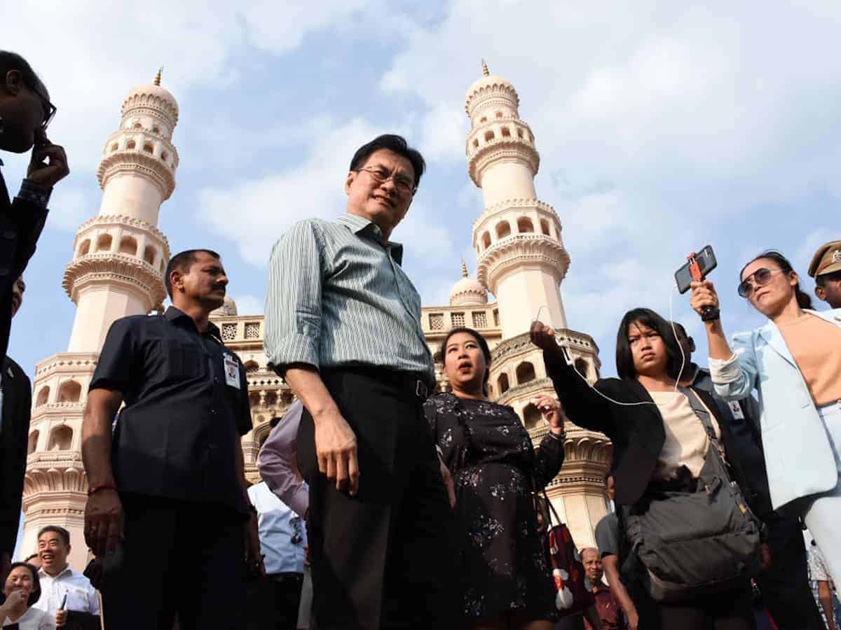 Hyderabad: Thailand’s Deputy Prime Minister Jurin Laksanawisit visited Hyderabad’s historic Charminar and Ladd Bazar on Sunday.