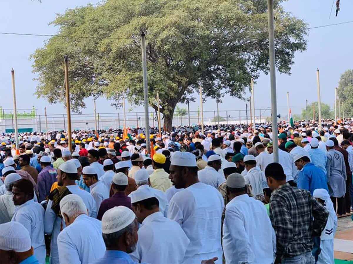 Hyderabad: The participants offered Namaz-E-Jummah at Eidgah, Mir Alam on Friday ahead of the ‘Tiranga rally’ organised by the United Muslim Action Committee, comprising various Muslim groups and headed by the All India Majlis-e-Ittehadul Muslimeen (AIMIM).