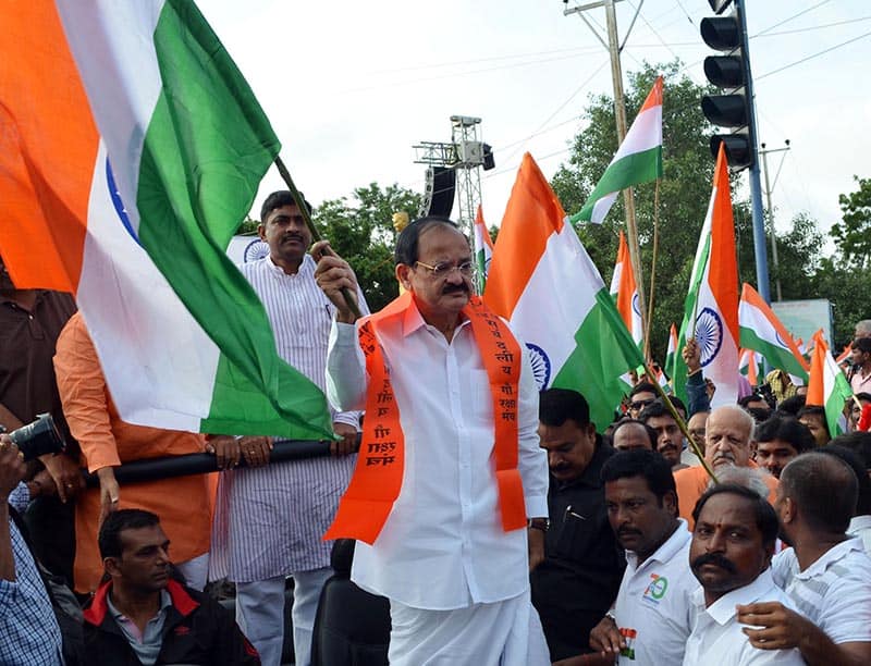 HYDERABAD, SEP 3 (UNI):- Union Minister of Urban Development & Information and Broadcasting M Venkaiah Naidu Flag off ‘Tiranga Yatra’ in Hyderabad on Saturday.UNI PHOTO-37U