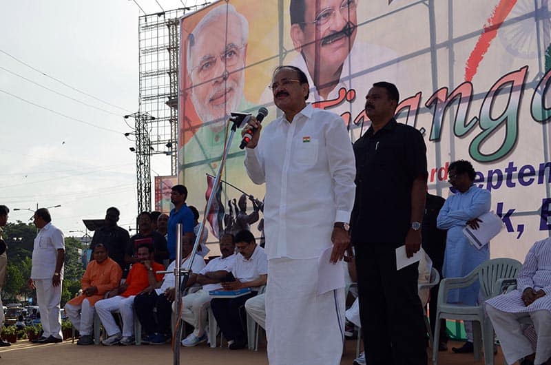HYDERABAD, SEP 3 (UNI):- Union Minister of Urban Development & Information and Broadcasting M Venkaiah Naidu addressing at the ‘Tiranga Yatra’ in Hyderabad on Saturday. UNI PHOTO-39U